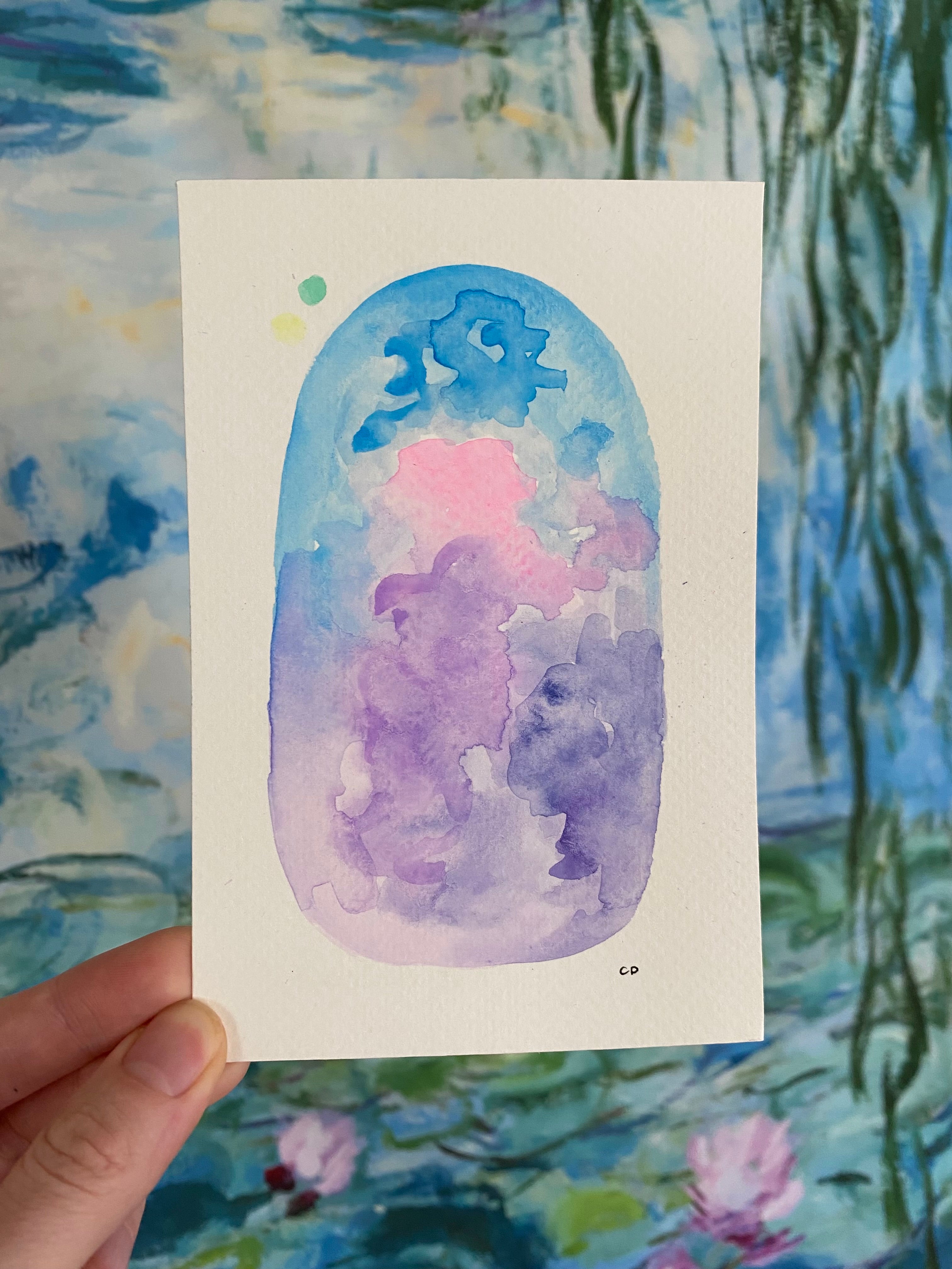 For every reading, I call in the support of our ancestors and Spirit guides for assistance. I use distance reiki to help establish our connection across time and space. Before painting, I spend time meditating to receive messages for you that may arrive from your higher self, an unacknowledged emotion, a nearby spirit, a stuck energy, your very wishes, or beyond. Then I get out my watercolors and paint the colors I perceive around you as your aura. The part that takes the longest is the written interpretation, as I take great care in conveying your messages thoughtfully and compassionately. Once complete, your reading is sent to your provided e-mail. A photo submission is not required, unless you would like to tap into a past moment in time.