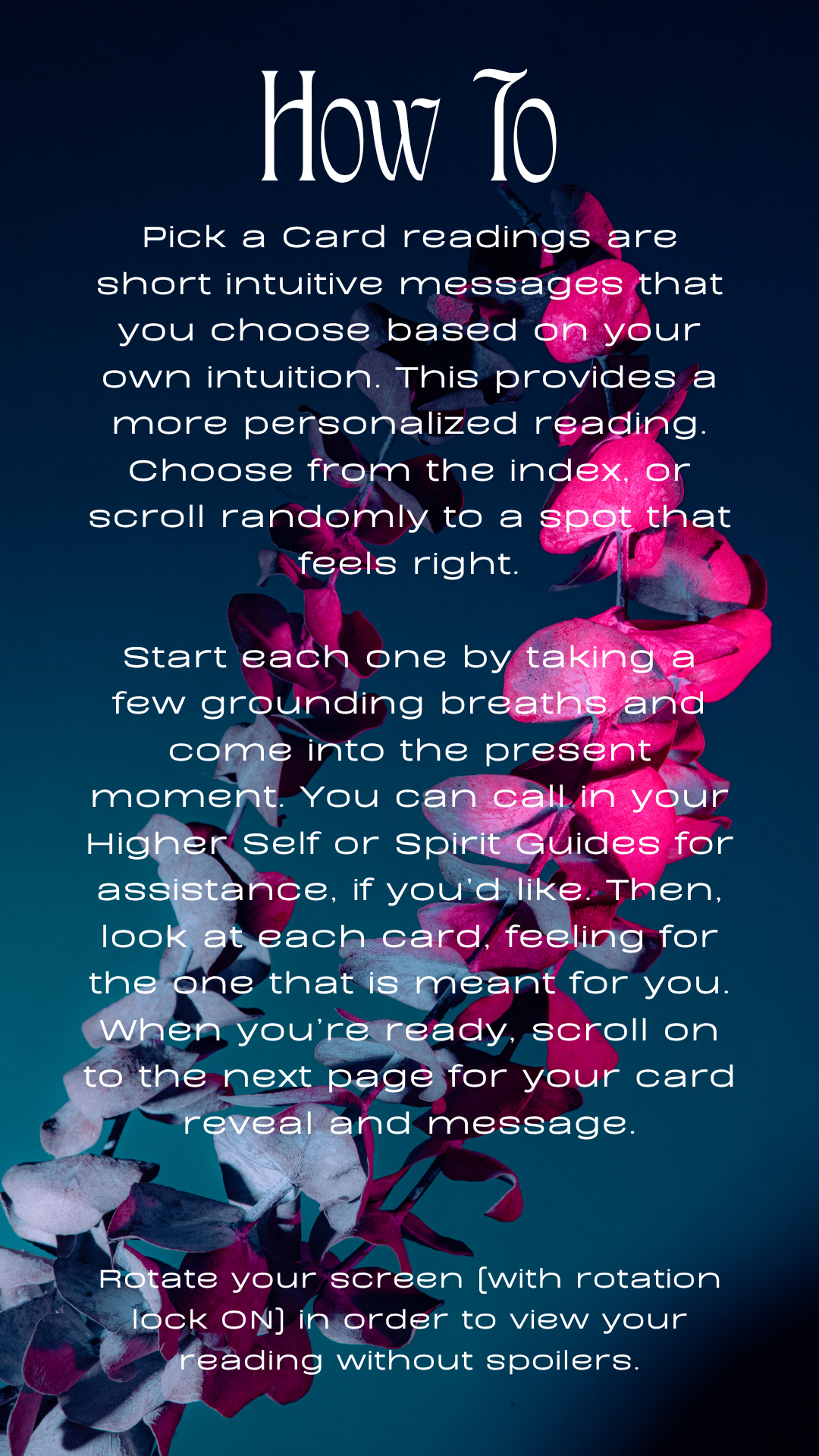 For personal use only. Fun to do with friends! Please do not resell readings as your own.