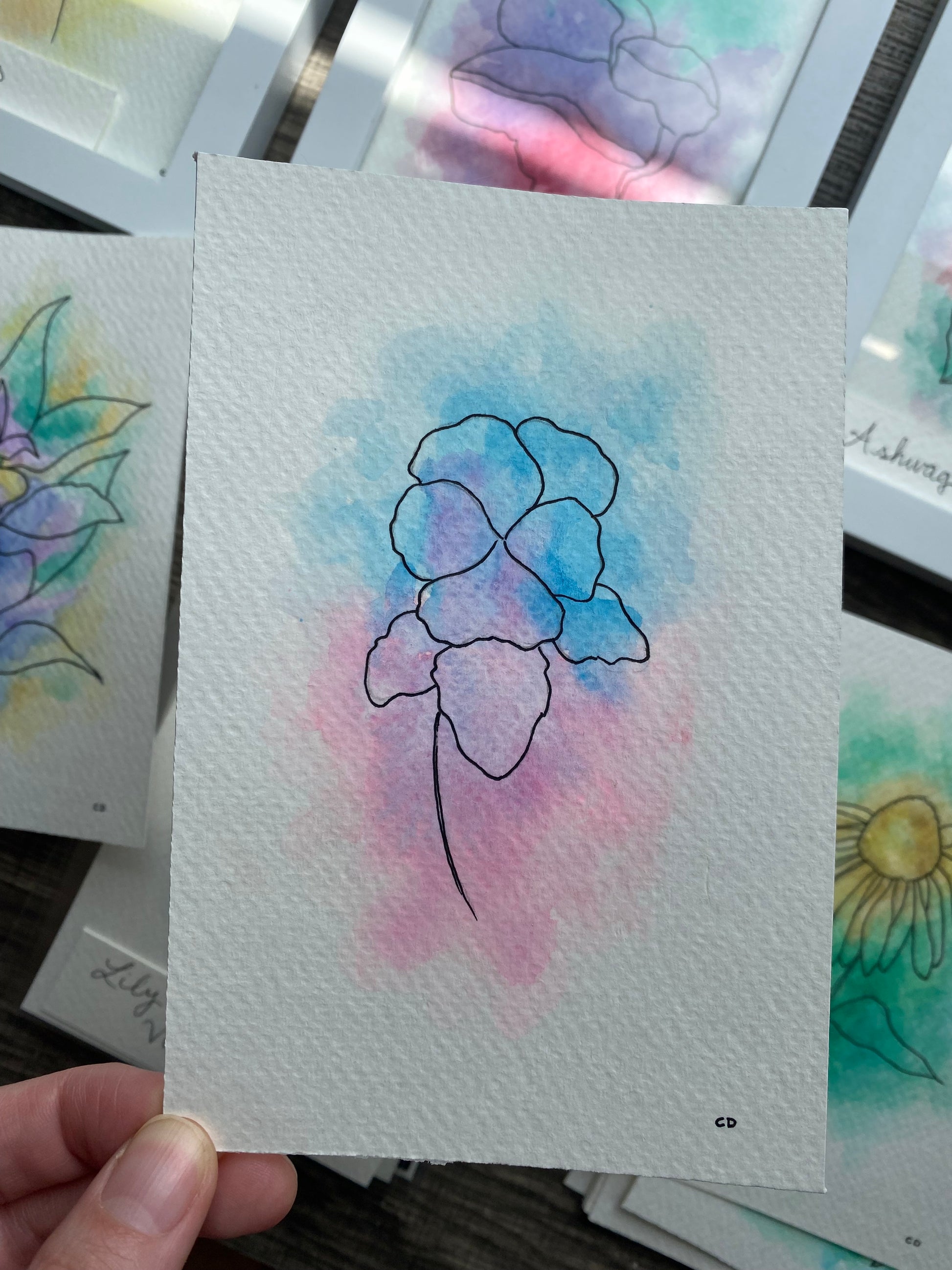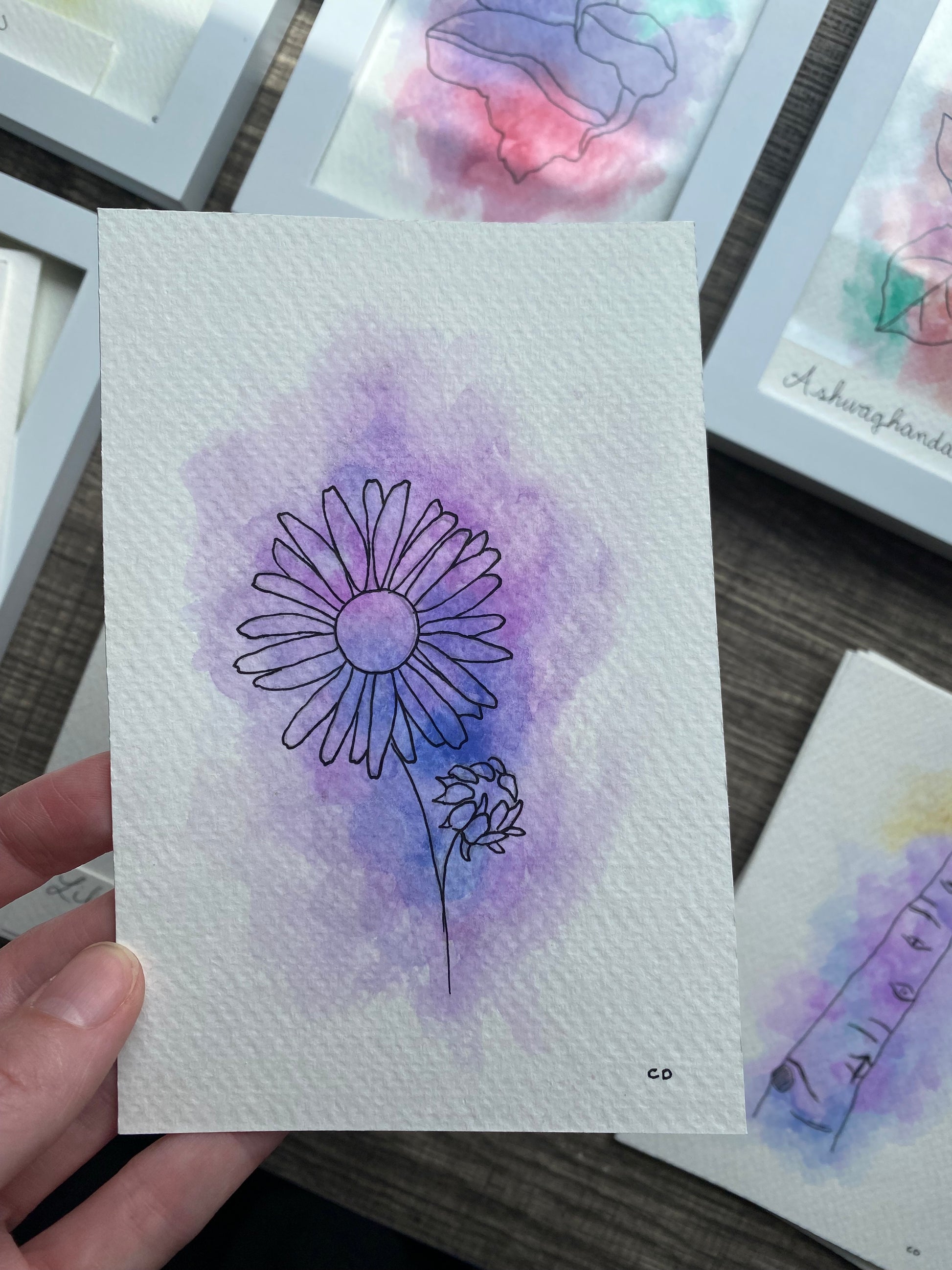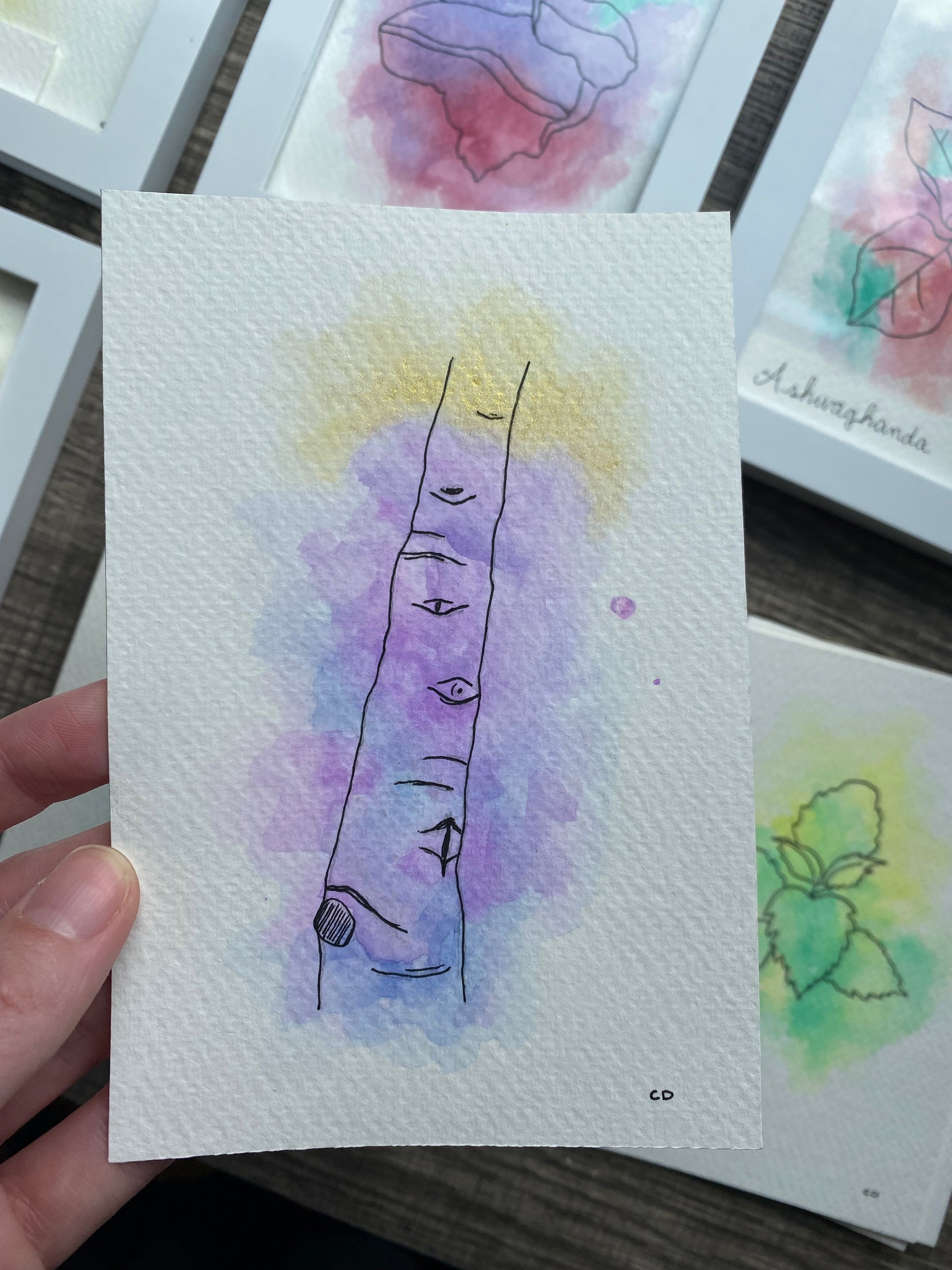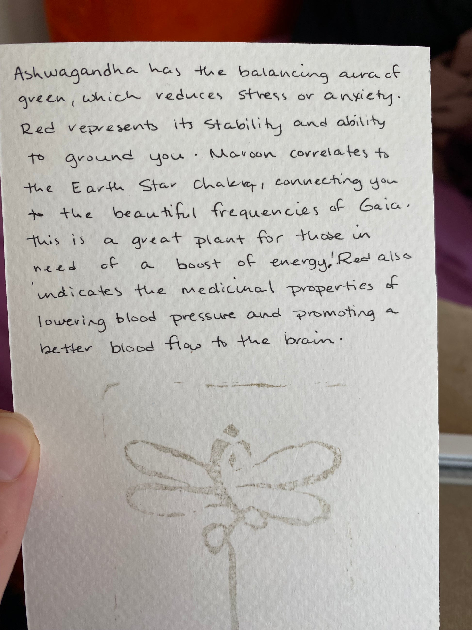 The back of your plant aura painting has handwritten details about the colors and energy flow. Custom plant auras also receive a typed report about the painting.